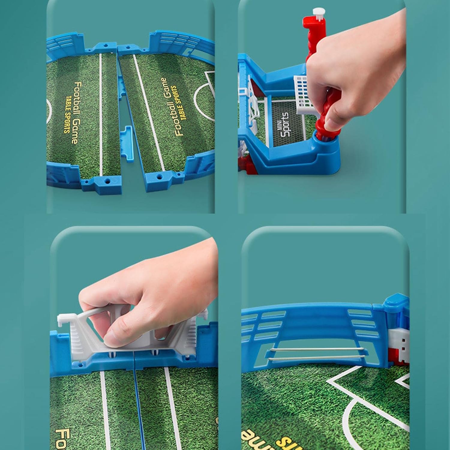 Enjoy exciting soccer matches anywhere with this Mini Tabletop Football Game! Designed for two players, this compact hand soccer game lets you shoot, defend, and score using spring-powered handles. The set includes a detailed mini football field, two goals with scoreboards, and small soccer balls for endless fun. Perfect for kids and families, this portable football toy helps develop hand-eye coordination, reaction speed, and teamwork. Ideal for home, travel, or office entertainment!